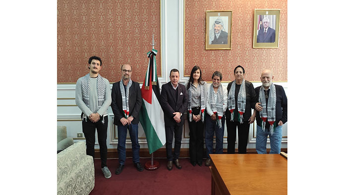 El embajador palestino, Riyad Alhalabi, recibió a una delegación del Partido Comunista de la Argentina encabezada por su secretario de Relaciones Internacionales Marcelo Rodríguez, quien recalcó que “lo más importante en este momento es frenar el genocidio que se lleva adelante en Gaza”.
