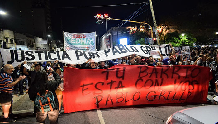 En esta localidad del partido de Lanús, los vecinos se manifiestan en solidaridad con Pablo Grillo, pero también para exigir la renuncia de la ministra Bullrich y que cese de la violencia institucional.