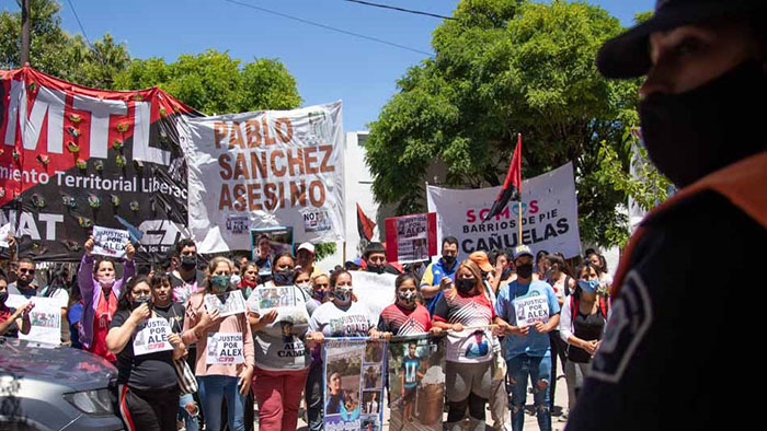 El crimen de Alex Campos fue perpetrado en plena pandemia y entre otras cosas por eso es que muy probablemente Sánchez nunca hubiera sido llevado a juicio, de no ser por la movilización que desde la periferia hacia el centro de la ciudad de Cañuelas, fue creciendo a partir del primer día con la madre de Alex, Claudia Cortés, a la cabeza, quien siempre estuvo acompañada por el PC, La Fede, el MTL y la CTA.