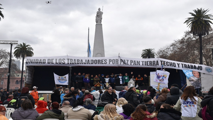 Los puntos de vista del prelado coincidieron con varios de los que atravesaron la movilización en la que participó un amplio abanico de sectores del universo del trabajo. “Hoy hubo una presencia de las tres centrales sindicales y, como siempre, una muy importante de las organizaciones sociales”, valoró positivamente Micheli pero advirtió que “en realidad falta que la gente no organizada, quienes siempre salen por su cuenta, vuelvan a tomar las calles junto a los sectores que sí estamos organizados”.