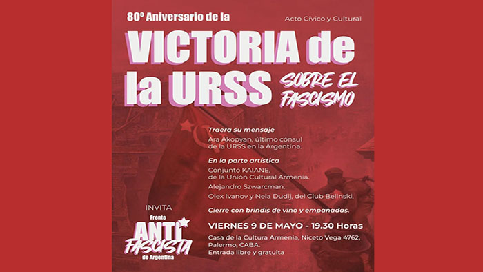 El Partido Comunista estará realizando junto al “Capítulo Argentino del Congreso Mundial contra el fascismo, neofascismo y expresiones similares” una actividad en homenaje a la Victoria del Ejército Rojo contra el nazismo”, en la que hablará su secretario general, Jorge Kreyness.