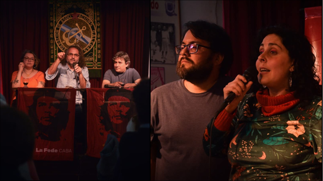 Uno de los invitados de la noche fue el filósofo e investigador del Conicet, Rocco Carbone. En su intervención, Carbone, quien también integra la lista 314 del PC como candidato a diputado, negó que la sociedad argentina esté atravesando una crisis de representación. Por el contrario, señaló que “la clase de la gran propiedad, que ideológicamente se constituye en torno a programas políticos reaccionarios, está muy bien representados en el gobierno actual, no solo en el programa económico de Milei sino también en apellidos como Bullrich Luro Pueyrredón Cantilo”. En verdad, indicó que “la crisis de representación reside en la organización política de la clase trabajadora”. Por ello, celebró la lista de candidatos y candidatas comunistas en la Ciudad de Buenos Aires e hizo un llamado a fortalecer el Partido Comunista “como contribución a una política de renovación en la representación política de la clase trabajadora”.
