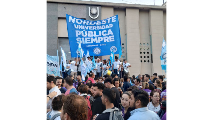 En este caso participaron los comunistas de Chaco y Corrientes, provincias que también quedaron hermanadas por ese abrazo convocado por los frentes gremiales universitarios que reúnen a docentes y no docentes, que se movilizaron con la consigna de defender los salarios y para pronunciarse en contra de recortes presupuestarios que desfinancian al sistema universitario, la ciencia y la educación.