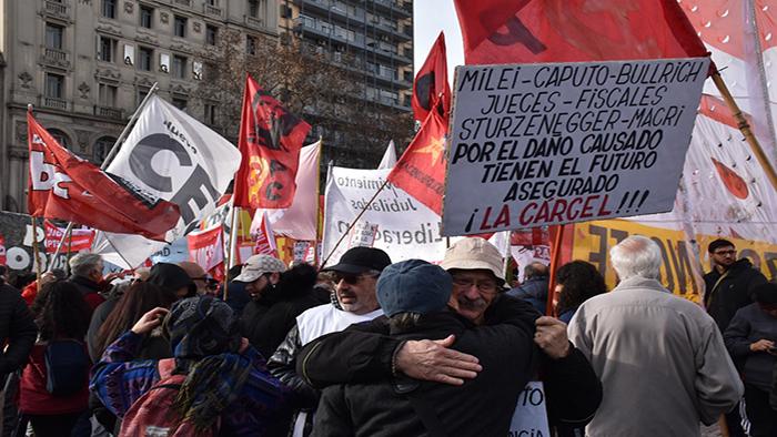 En este sentido, puntualizó que “el gobierno de Milei es salvaje en los niveles económico, social y político”, pero exhibe particular saña a la hora de ejercer “la represión directa cuando golpea y gasea a los jubilados, a fotorreporteros como es el caso del compañero Grillo y en la vida cotidiana con allanamientos a organizaciones sociales entre otras cosas”. Y remarcó que “esto refleja que el objetivo que traen es el ajuste que como siempre cierra con palos, pero también se jactan de este déficit cero que se hace sobre las espaldas de los salarios de los trabajadores jubilados y activos, es decir del conjunto de la clase trabajadora”.