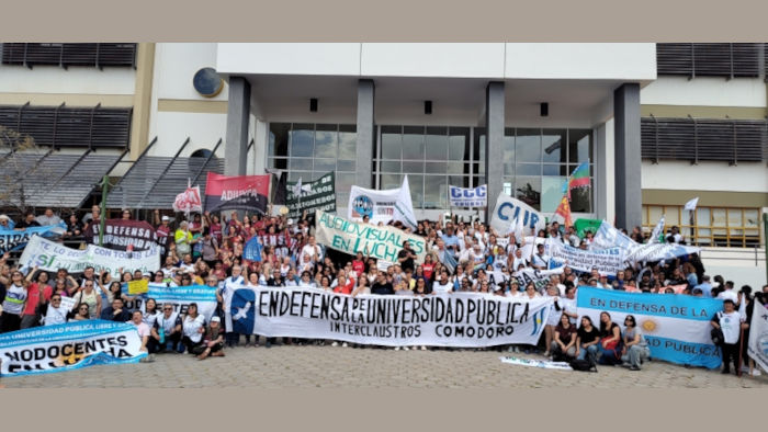 La jornada reunió a profesores, investigadores y estudiantes de las universidades de Chubut, Santa Cruz y Tierra del Fuego. Entre ellos estuvo la secretaria de Derechos Humanos de Conadu Histórica, Elena González, quien además es docente de la Universidad San Juan Bosco, quien recordó que “las universidades están en los lugares más recónditos de nuestro país y con estos actos queremos defender a la universidad como un derecho y no como lo que plantean algunos que es un servicio que va a redituar económicamente”, por lo que “decimos que en la Patagonia la universidad es soberanía, ya que nos tenemos que preguntar quién sino el Estado va a venir a poner una serie de universidades en Río Turbio o Maitén”.