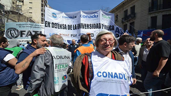 Cabe citar que el Frente que agrupa a Conadu, Conadu Histórica, Fagdut y Fedun, surgió como una rápida respuesta “a los primeros ataques que el gobierno hizo contra la universidad cuando acababa de asumir, por eso hicimos un acercamiento con las distintas corrientes del estudiantado y a partir de marzo en un plenario del Consejo Interuniversitario Nacional, se logró que todos salgamos en conjunto y eso es lo que estamos haciendo”, recordó la secretaria de Derechos Humanos de Conadu Histórica, Elena González.