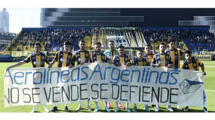 La resistencia y el rechazo a esa ley, se viene haciendo sentir con fuerza en las canchas. El Club Ituzaingo salió a jugar con una bandera en defensa de Aerolíneas Argentinas, algo que también habían hecho durante la crisis de 2001 cuando este equipo se mostró con una pancarta en la que podía leerse la leyenda “Salvemos Aerolíneas Argentinas”. Ahora hay varios clubes del ascenso que siguen el mismo camino, tal como lo hacen Defensores de Belgrano, Colón de Santa Fe y Atlanta que son los que en distintas fechas salieron a la cancha con pancartas en las que fijaron una clara posición para defender a la línea de bandera argentina.