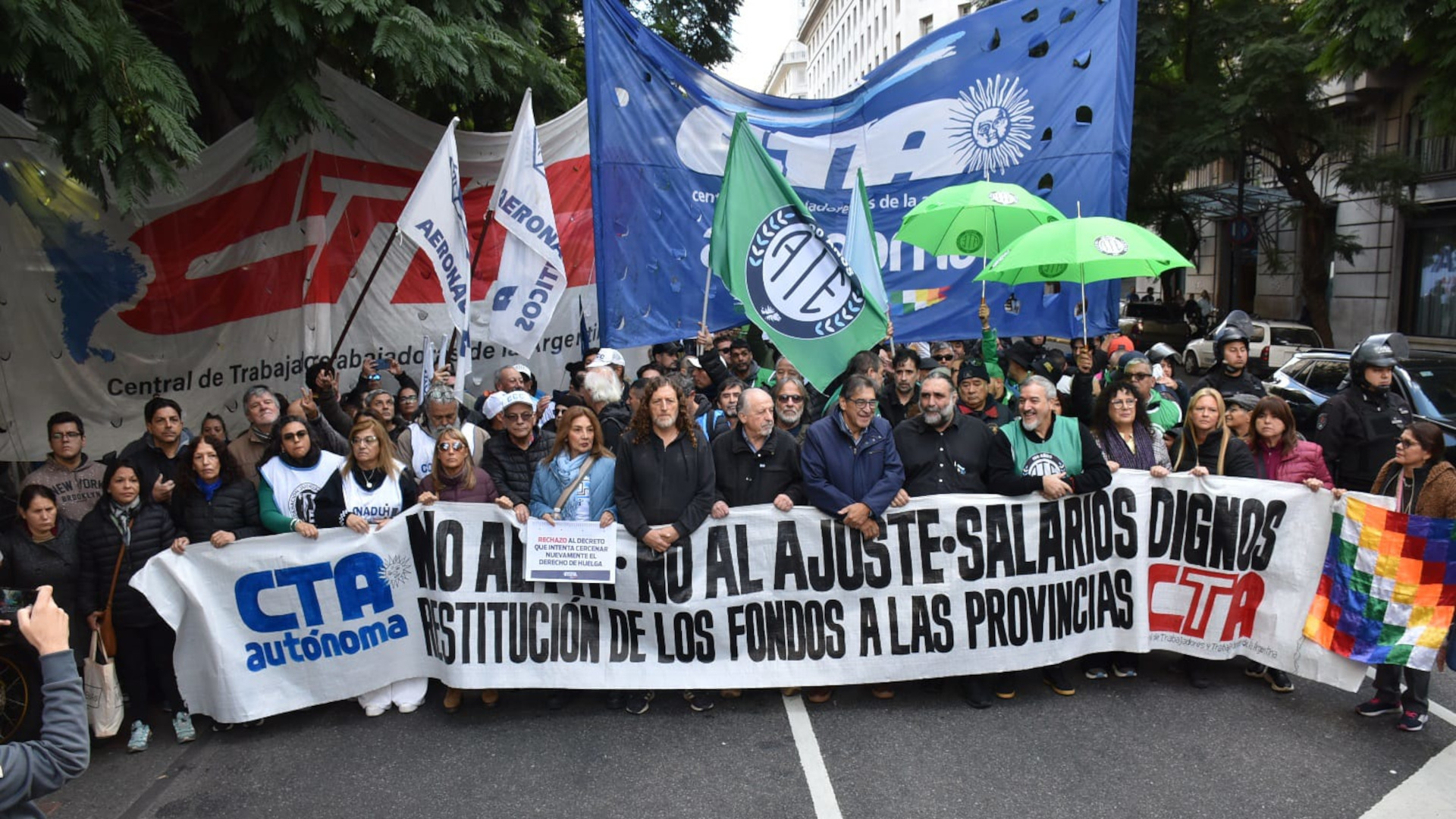 Se trató de una marcha en la que también se enfrentó la creciente persecución que sufre el movimiento sindical que, por un lado, se manifiesta explícitamente contra varios dirigentes, tal como ocurrió con el titular de ATE, Rodolfo Aguiar, que en la previa de la jornada recibió una amenaza de muerte, pero que también “constantemente se repite en diferentes niveles con actos que buscan amedrentar”. Y, asimismo, se explicita a través de acciones de gobierno como se advierte en los decretos 340, 341 y 342 que se publicarpm el miércoles pasado y por los que se limita el ejercicio del derecho de huelga, se modifica la Ley 26.075, más conocida como de Financiamiento Educativo, en lo inherente a la responsabilidad del gobierno nacional de participar del debate salarial y también se modifica la Ley de Asociaciones Sindicales (Ver A puro decretazo contra la clase trabajadora  y Milei destruye la Paritaria Nacional Docente).