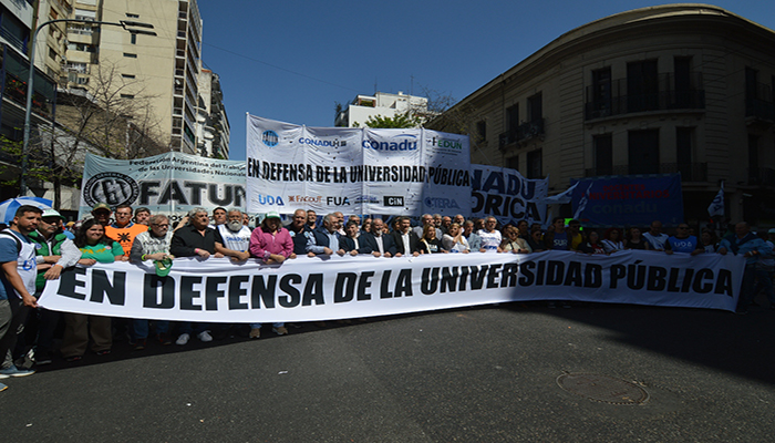 Por otra parte resaltó que según un informe confeccionado por la Federación Nacional de Docentes Universitarios (Conadu), el presupuesto actual sólo abarca el 7,1 por ciento del total del presupuesto universitario. El 57 por ciento está destinado al pago de salarios de docentes y autoridades superiores, el 33,5 a abonar sueldos de no docentes y el 2,2 a los hospitales universitarios. “Consecuentemente, pese a la suba ofrecida por el Poder Ejecutivo, las instituciones nacionales continúan en una situación crítica”, advirtió.