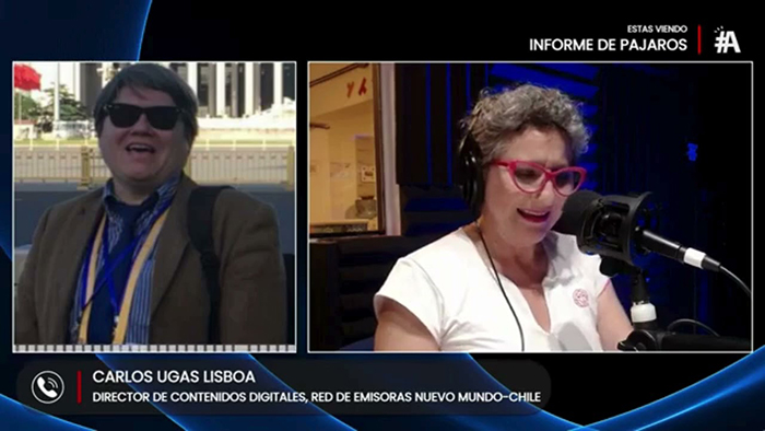 Finalmente, Carlos Ugas Lisboa, jefe de la Oficina de Prensa del Partido Comunista de Chile y editor político de la Red de Emisoras Nuevo Mundo, atendió desde el otro lado de la cordillera y abrió la charla con un saludo a “los miles de chilenos y chilenas que aún viven en Argentina”.