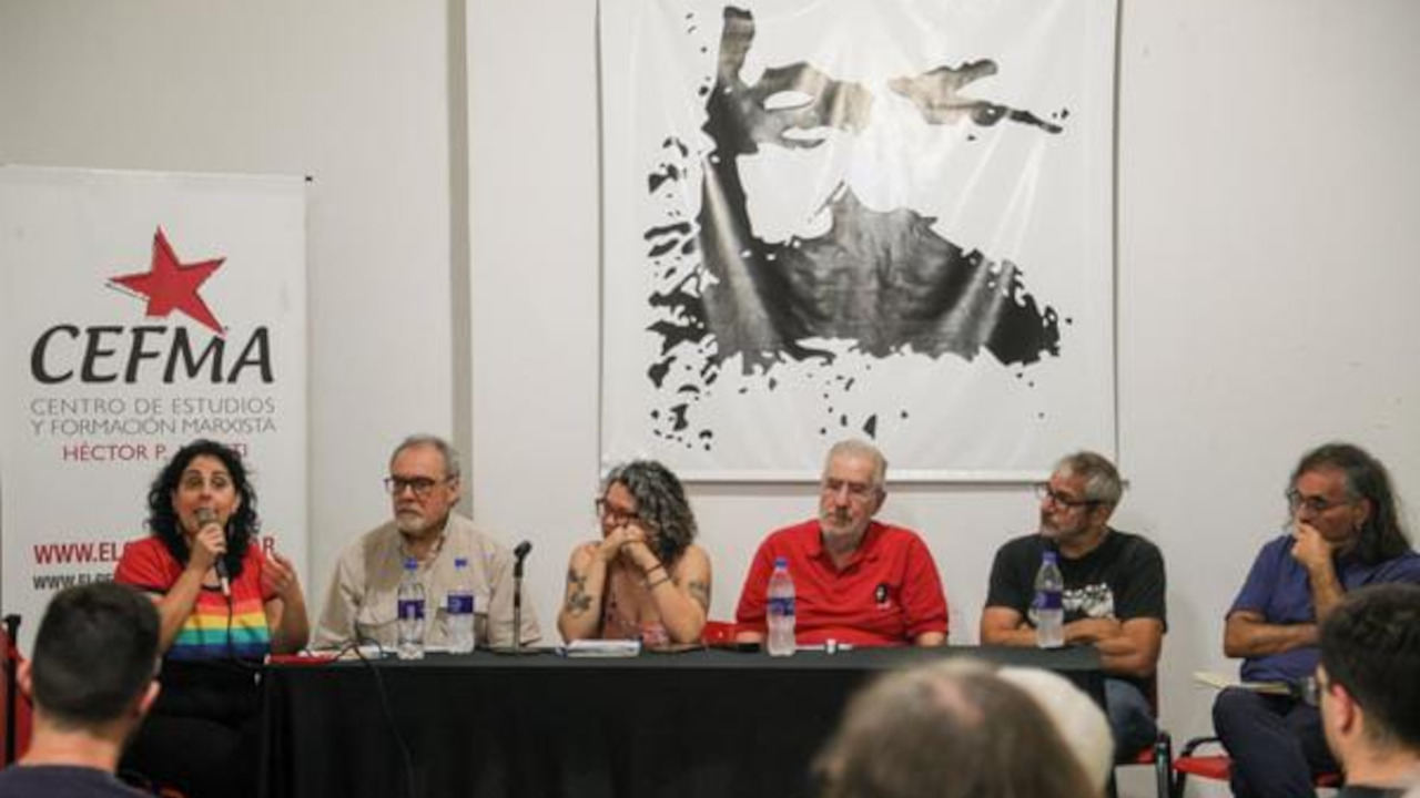 Rocco Carbone, quien también forma parte de la lista de diputados del PC, abrió el panel con una intervención en la que analizó el capitalismo argentino en el marco de la crisis global y trazó conceptos para enfrentarlo y derrotarlo. “Hay una clase que se organiza sobre el trabajo y que constituye la fuerza social y moral de un país: esa es la única clase nacional, la clase trabajadora”, afirmó. En tanto que “la clase capitalista, la clase de la gran propiedad se organiza alrededor del excedente, del afano y este gobierno de Milei la representa muy bien”, puntualizó Carbone.